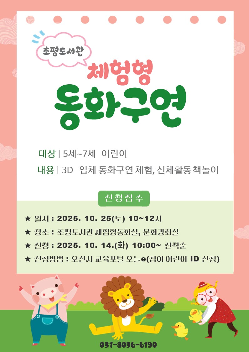 [초평] 주말 체험형 동화구연 신청 안내 (10.25. - 개인)